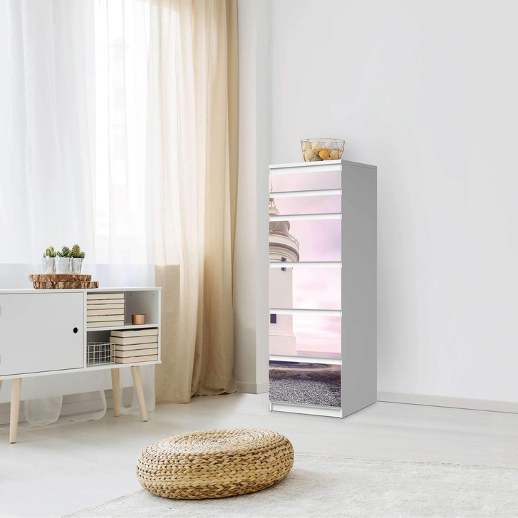 Unsere Klebefolie Lighthouse für die Malm Kommode 6 Schubladen (schmal) ist der Blickfang in jedem Schlafzimmer. Die Dekofolien sind hochwertige, selbsthaftende Vinylfolien (seidenmatt) und können dank Bubble-free Technologie kinderleicht verklebt werden.