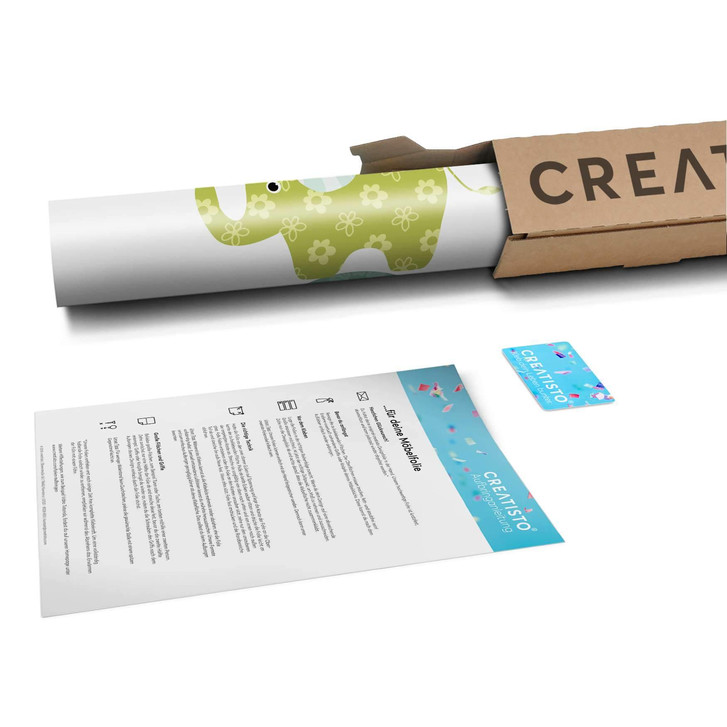 Das Trägerpapier von der Folie ca. 10-20 cm abziehen und am oberen Bereich des Objektes positionieren. Zieh jetzt das Trägerpapier Stück für Stück von der Motivfolie nach unten hin ab und streiche das Motiv vorsichtig an der Möbeloberfläche fest.