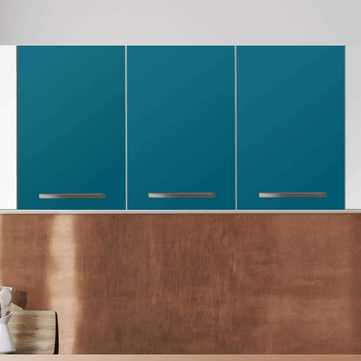 Unsere Klebefolie Türkisgrün Dark (120cm Breite - entspricht der Breite von 3 Türen) für den Wandschrank ist der Blickfang in jeder Küche. Die Küchenfolien sind hochwertige, selbsthaftende Vinylfolien (seidenmatt) und können auf das gewünschte Mass zugeschnitten werden – je nachdem ob die Türkante umklebt werden soll oder nicht.