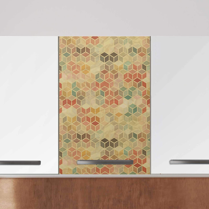 Unsere Klebefolie 3D Retro Pattern (40cm Breite - entspricht der Breite von 1 Tür) für den Wandschrank ist der Blickfang in jeder Küche. Die Küchenfolien sind hochwertige, selbsthaftende Vinylfolien (seidenmatt) und können auf das gewünschte Mass zugeschnitten werden – je nachdem ob die Türkante umklebt werden soll oder nicht.
