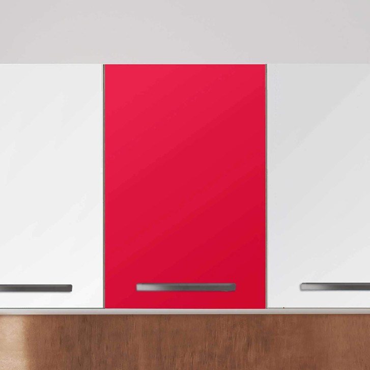 Unsere Klebefolie Rot Light (40cm Breite - entspricht der Breite von 1 Tür) für den Wandschrank ist der Blickfang in jeder Küche. Die Küchenfolien sind hochwertige, selbsthaftende Vinylfolien (seidenmatt) und können auf das gewünschte Mass zugeschnitten werden – je nachdem ob die Türkante umklebt werden soll oder nicht.