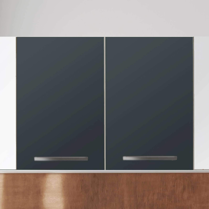 Unsere Klebefolie Blaugrau Dark (80cm Breite - entspricht der Breite von 2 Türen) für den Wandschrank ist der Blickfang in jeder Küche. Die Küchenfolien sind hochwertige, selbsthaftende Vinylfolien (seidenmatt) und können auf das gewünschte Mass zugeschnitten werden – je nachdem ob die Türkante umklebt werden soll oder nicht.
