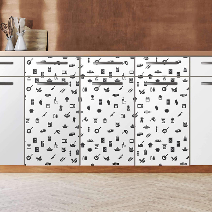 Unsere Küchenfolie Tasty (120cm Breite - entspricht der Breite von 3 Türen) für den Unterschrank ist der Blickfang in jeder Küche. Die Küchenfolien sind hochwertige, selbsthaftende Vinylfolien (seidenmatt) und können auf das gewünschte Mass zugeschnitten werden – je nachdem ob die Türkante umklebt werden soll oder nicht.