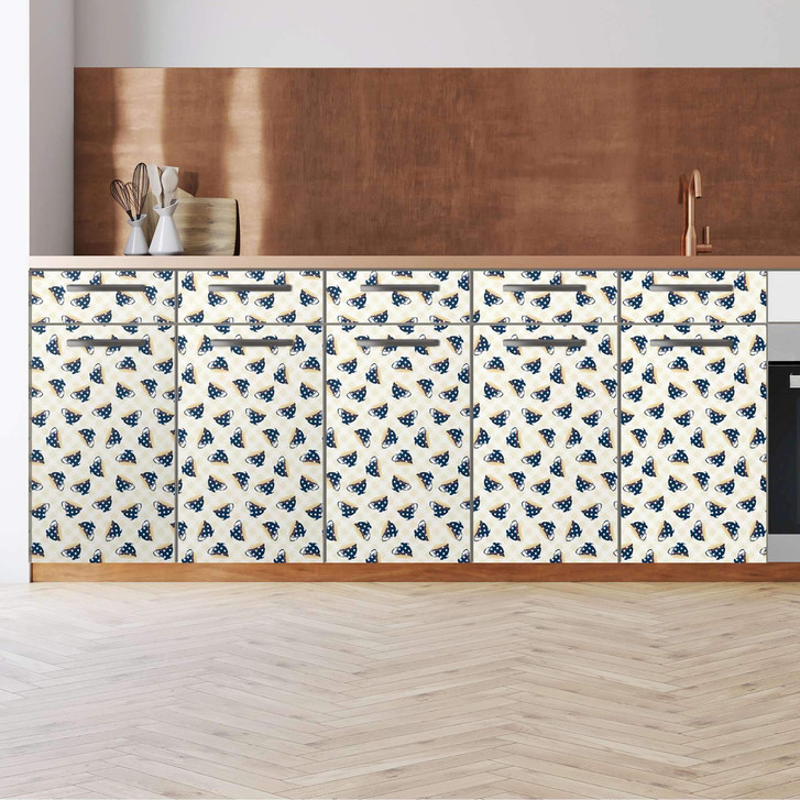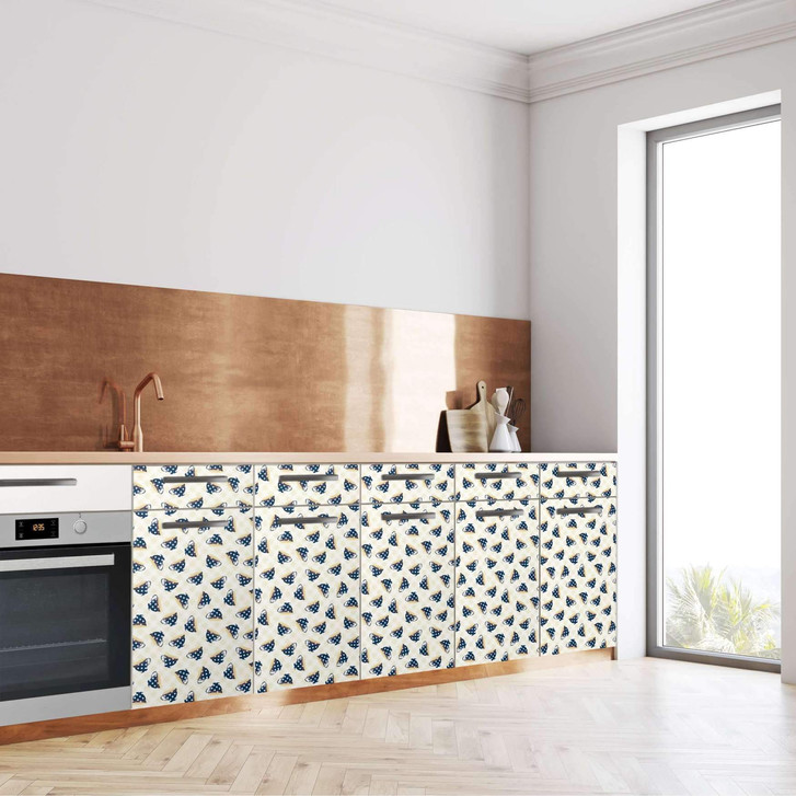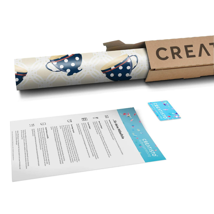 Unsere Küchenfolie Teatime (200cm Breite - entspricht der Breite von 5 Türen) für den Unterschrank ist der Blickfang in jeder Küche. Die Küchenfolien sind hochwertige, selbsthaftende Vinylfolien (seidenmatt) und können auf das gewünschte Mass zugeschnitten werden – je nachdem ob die Türkante umklebt werden soll oder nicht.