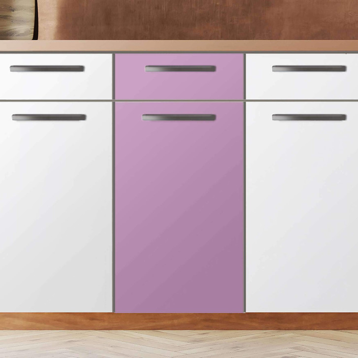 Unsere Küchenfolie Flieder Light (40cm Breite - entspricht der Breite von 1 Tür) für den Unterschrank ist der Blickfang in jeder Küche. Die Küchenfolien sind hochwertige, selbsthaftende Vinylfolien (seidenmatt) und können auf das gewünschte Mass zugeschnitten werden – je nachdem ob die Türkante umklebt werden soll oder nicht.