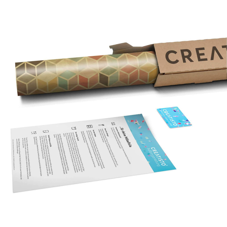 Unsere Küchenfolie 3D Retro Pattern (80cm Breite - entspricht der Breite von 2 Türen) für den Unterschrank ist der Blickfang in jeder Küche. Die Küchenfolien sind hochwertige, selbsthaftende Vinylfolien (seidenmatt) und können auf das gewünschte Mass zugeschnitten werden – je nachdem ob die Türkante umklebt werden soll oder nicht.