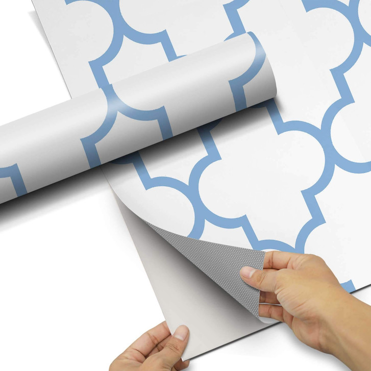 Unsere Küchenfolie Retro Pattern - Blau (80cm Breite - entspricht der Breite von 2 Türen) für den Unterschrank ist der Blickfang in jeder Küche. Die Küchenfolien sind hochwertige, selbsthaftende Vinylfolien (seidenmatt) und können auf das gewünschte Mass zugeschnitten werden – je nachdem ob die Türkante umklebt werden soll oder nicht.