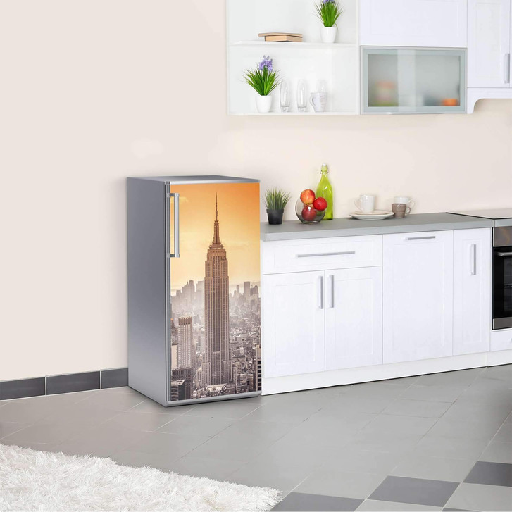 Unsere Kühlschrankfolie Empire State Building für die Kühlschrankgrösse 60x120cm ist der Blickfang in jeder Küche. Die Dekofolien sind hochwertige, selbsthaftende Vinylfolien (seidenmatt) und können dank Bubble-free Technologie kinderleicht verklebt werden.