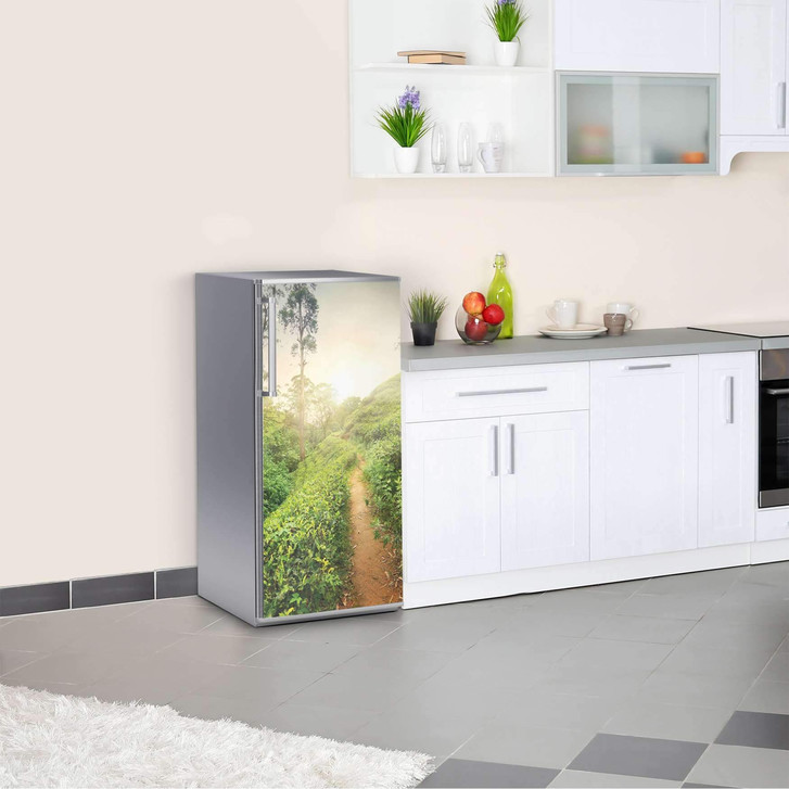 Unsere Kühlschrankfolie Green Tea Fields für die Kühlschrankgrösse 60x120cm ist der Blickfang in jeder Küche. Die Dekofolien sind hochwertige, selbsthaftende Vinylfolien (seidenmatt) und können dank Bubble-free Technologie kinderleicht verklebt werden.