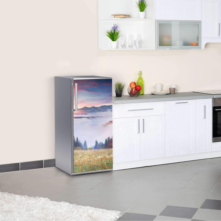 Unsere Kühlschrankfolie Herbstwald für die Kühlschrankgrösse 60x120cm ist der Blickfang in jeder Küche. Die Dekofolien sind hochwertige, selbsthaftende Vinylfolien (seidenmatt) und können dank Bubble-free Technologie kinderleicht verklebt werden.