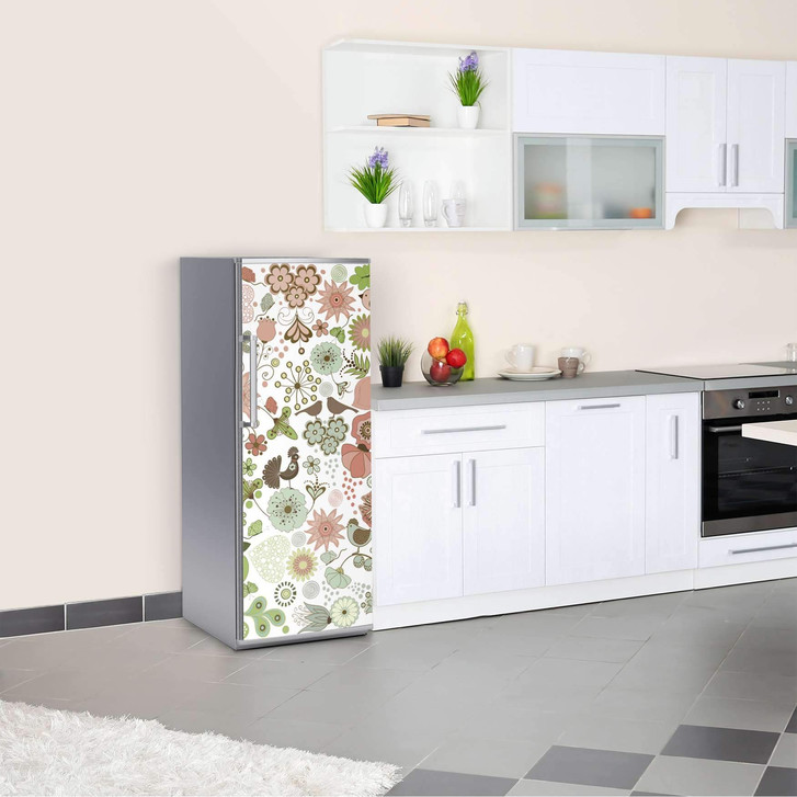 Unsere Kühlschrankfolie Flower Pattern für die Kühlschrankgrösse 60x150cm ist der Blickfang in jeder Küche. Die Dekofolien sind hochwertige, selbsthaftende Vinylfolien (seidenmatt) und können dank Bubble-free Technologie kinderleicht verklebt werden.