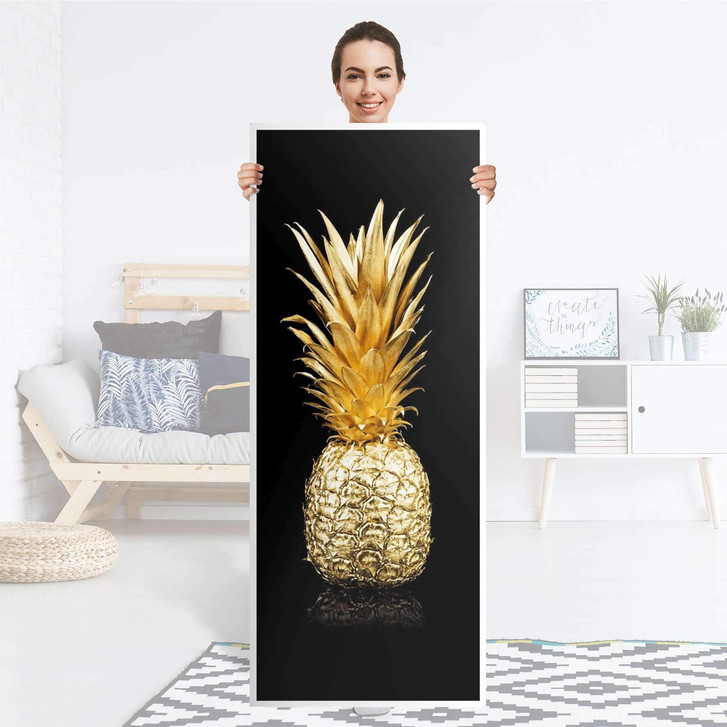 Unsere Kühlschrankfolie Goldenes Früchtchen für die Kühlschrankgrösse 60x150cm ist der Blickfang in jeder Küche. Die Dekofolien sind hochwertige, selbsthaftende Vinylfolien (seidenmatt) und können dank Bubble-free Technologie kinderleicht verklebt werden.