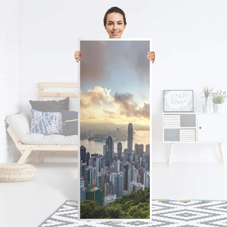 Unsere Kühlschrankfolie Hong Kong für die Kühlschrankgrösse 60x150cm ist der Blickfang in jeder Küche. Die Dekofolien sind hochwertige, selbsthaftende Vinylfolien (seidenmatt) und können dank Bubble-free Technologie kinderleicht verklebt werden.