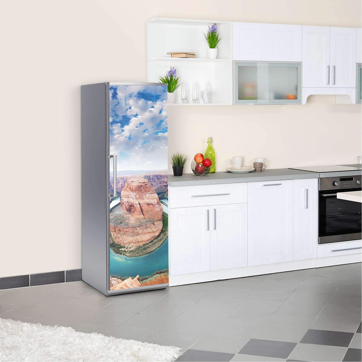 Unsere Kühlschrankfolie Grand Canyon für die Kühlschrankgrösse 60x180cm ist der Blickfang in jeder Küche. Die Dekofolien sind hochwertige, selbsthaftende Vinylfolien (seidenmatt) und können dank Bubble-free Technologie kinderleicht verklebt werden.