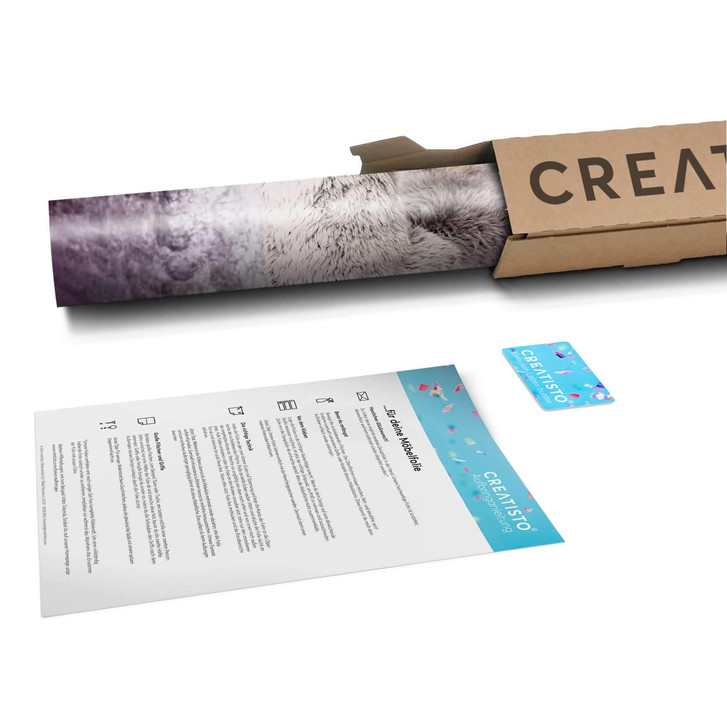 Das Trägerpapier von der Folie ca. 10-20 cm abziehen und am oberen Bereich des Objektes positionieren. Zieh jetzt das Trägerpapier Stück für Stück von der Motivfolie nach unten hin ab und streiche das Motiv vorsichtig an der Möbeloberfläche fest.