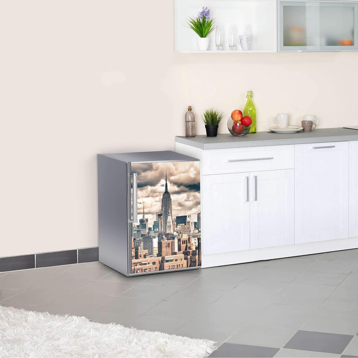 Unsere Kühlschrankfolie Skyline NYC für die Kühlschrankgrösse 60x80cm ist der Blickfang in jeder Küche. Die Dekofolien sind hochwertige, selbsthaftende Vinylfolien (seidenmatt) und können dank Bubble-free Technologie kinderleicht verklebt werden.