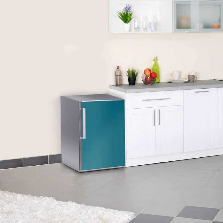 Unsere Kühlschrankfolie Türkisgrün Dark für die Kühlschrankgrösse 60x80cm ist der Blickfang in jeder Küche. Die Dekofolien sind hochwertige, selbsthaftende Vinylfolien (seidenmatt) und können dank Bubble-free Technologie kinderleicht verklebt werden.