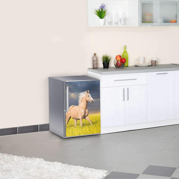 Unsere Kühlschrankfolie Wildpferd für die Kühlschrankgrösse 60x80cm ist der Blickfang in jeder Küche. Die Dekofolien sind hochwertige, selbsthaftende Vinylfolien (seidenmatt) und können dank Bubble-free Technologie kinderleicht verklebt werden.