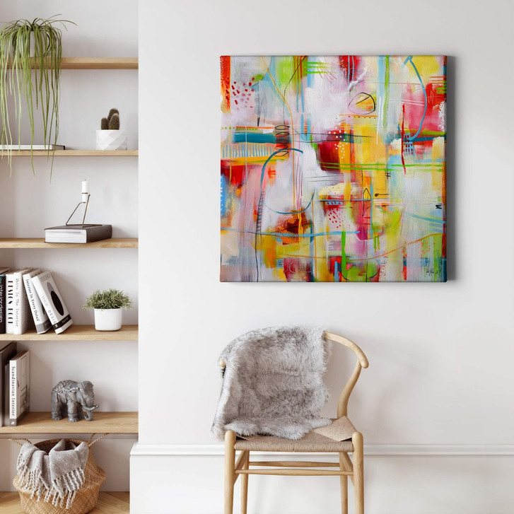 Versprühen Sie mit diesem Wandbild ein modernes Flair im Wohnzimmer! Denn die Wohneinrichtung spigelt Ihre Persönlichkeit wider und schafft eine einzigartige Wohlfühloase. Dieser Kunstdruck überzeugt durch Kreativität und verleiht dem Raum ein modernes Wohngefühl. Dieses Bild schafft mit dem ausgefallenen Farbspiel einen aussergewöhnlichen Blickfang. Im Gegensatz zur konkreten Kunstform gibt die abstrakte Kunst kein präzises Bild wieder. Es stellt eine Illusion der Räume dar, die teilweise völlig aufgelöst ist. Die abstrakten Bilder sind unabhängig von der Natur, die diesen Kunststil so unvergleichlich macht. Zudem besticht das Leinwandbild mit seiner bunten Farbe, die seine hochwertige Optik unterstreicht. Zusammen mit seinen wertvollen Materialien entsteht ein besonderes Schmuckstück. Das Motiv wird auf festem Canvas gedruckt, der aus 65% Polyester und 35% Baumwolle besteht. Die Bilder bestechen durch hohe Farbintensität, Farbsättigung sowie lange Farbechtheit. Die 2cm starken Keilrahmen der Leinwände werden per Hand bespannt.