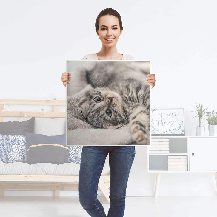 Unsere Möbel Klebefolie Kitty the Cat für den Hemnes Tisch 55x55cm ist der Blickfang in jedem Wohnzimmer. Die Dekofolien sind hochwertige, selbsthaftende Vinylfolien (seidenmatt) und können dank Bubble-free Technologie kinderleicht verklebt werden.