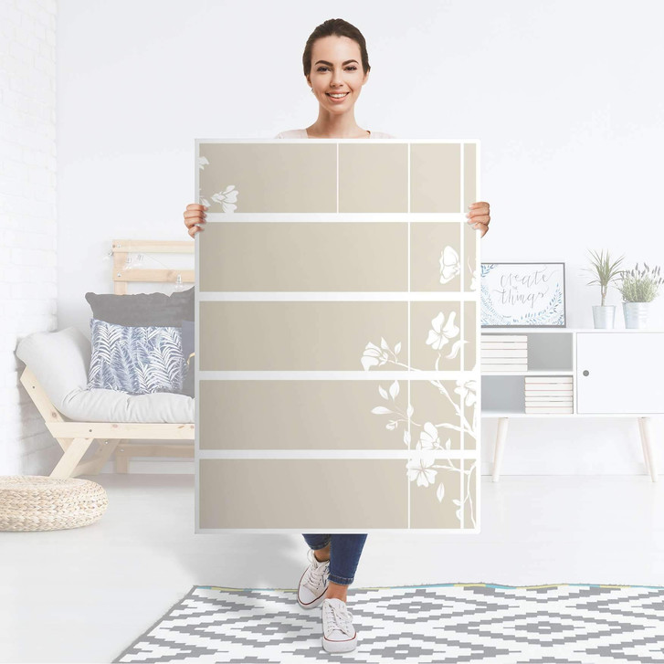 Unsere Möbel Klebefolie Florals Plain 3 für die Malm Kommode 6 Schubladen (hoch) ist der Blickfang in jedem Schlafzimmer. Die Dekofolien sind hochwertige, selbsthaftende Vinylfolien (seidenmatt) und können dank Bubble-free Technologie kinderleicht verklebt werden.