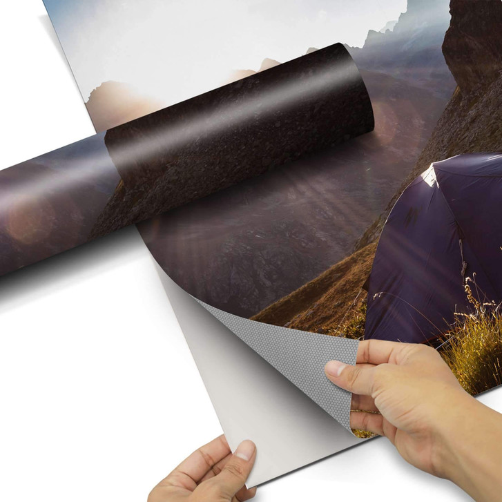Das Trägerpapier von der Folie ca. 10-20 cm abziehen und am oberen Bereich des Objektes positionieren. Zieh jetzt das Trägerpapier Stück für Stück von der Motivfolie nach unten hin ab und streiche das Motiv vorsichtig an der Möbeloberfläche fest.