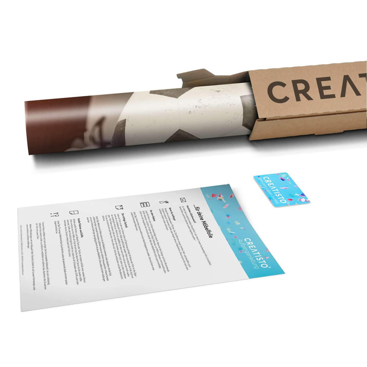 Das Trägerpapier von der Folie ca. 10-20 cm abziehen und am oberen Bereich des Objektes positionieren. Zieh jetzt das Trägerpapier Stück für Stück von der Motivfolie nach unten hin ab und streiche das Motiv vorsichtig an der Möbeloberfläche fest.