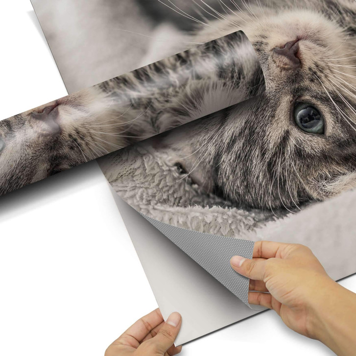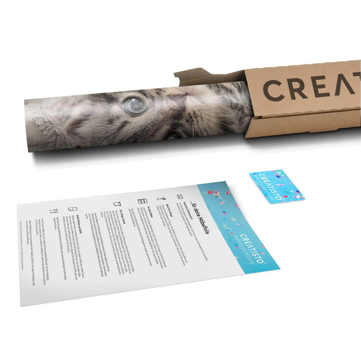 Das Trägerpapier von der Folie ca. 10-20 cm abziehen und am oberen Bereich des Objektes positionieren. Zieh jetzt das Trägerpapier Stück für Stück von der Motivfolie nach unten hin ab und streiche das Motiv vorsichtig an der Möbeloberfläche fest.