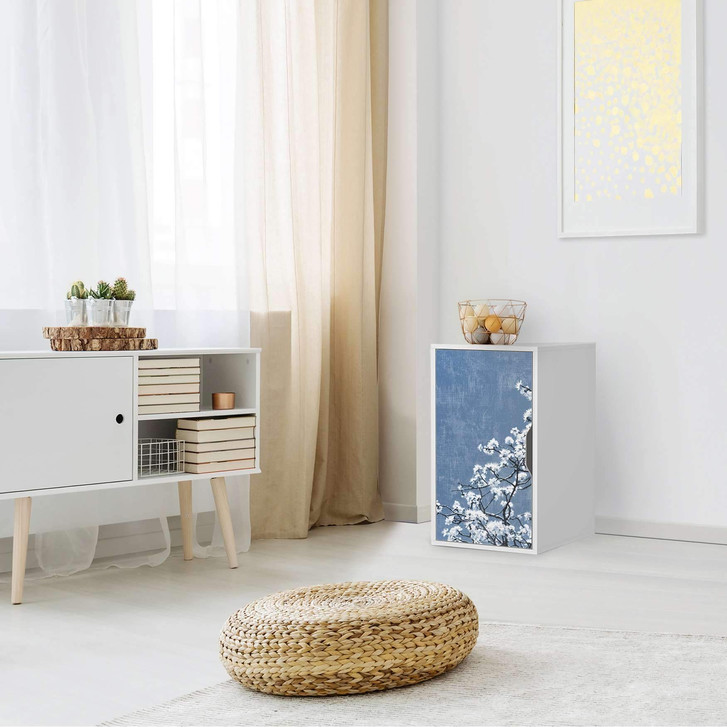 Unsere Möbelfolie Spring Tree für den Alex Schrank ist der Blickfang im Wohnzimmer. Unsere Dekofolien sind hochwertige, selbsthaftende Vinylfolien (seidenmatt) und können dank Bubble-free Technologie kinderleicht verklebt werden.