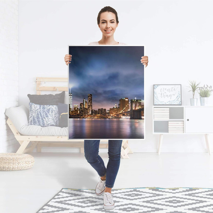 Unsere Möbelfolie Brooklyn Bridge für das Billy Regal 3 Fächer ist der Blickfang in jedem Wohnzimmer. Die Dekofolien sind hochwertige, selbsthaftende Vinylfolien (seidenmatt) und können dank Bubble-free Technologie kinderleicht verklebt werden.