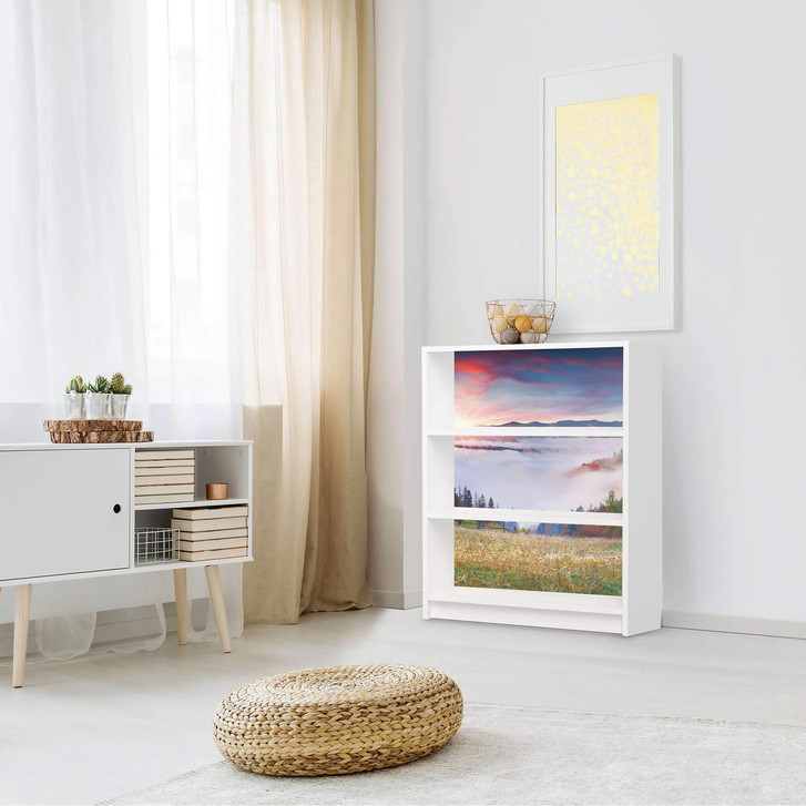 Unsere Möbelfolie Herbstwald für das Billy Regal 3 Fächer ist der Blickfang in jedem Wohnzimmer. Die Dekofolien sind hochwertige, selbsthaftende Vinylfolien (seidenmatt) und können dank Bubble-free Technologie kinderleicht verklebt werden.