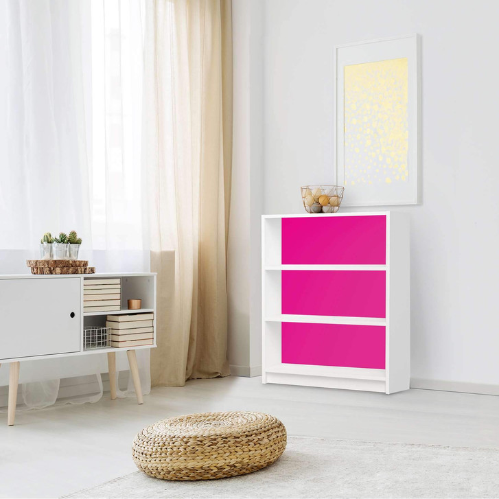 Unsere Möbelfolie Pink Dark für das Billy Regal 3 Fächer ist der Blickfang in jedem Wohnzimmer. Die Dekofolien sind hochwertige, selbsthaftende Vinylfolien (seidenmatt) und können dank Bubble-free Technologie kinderleicht verklebt werden.