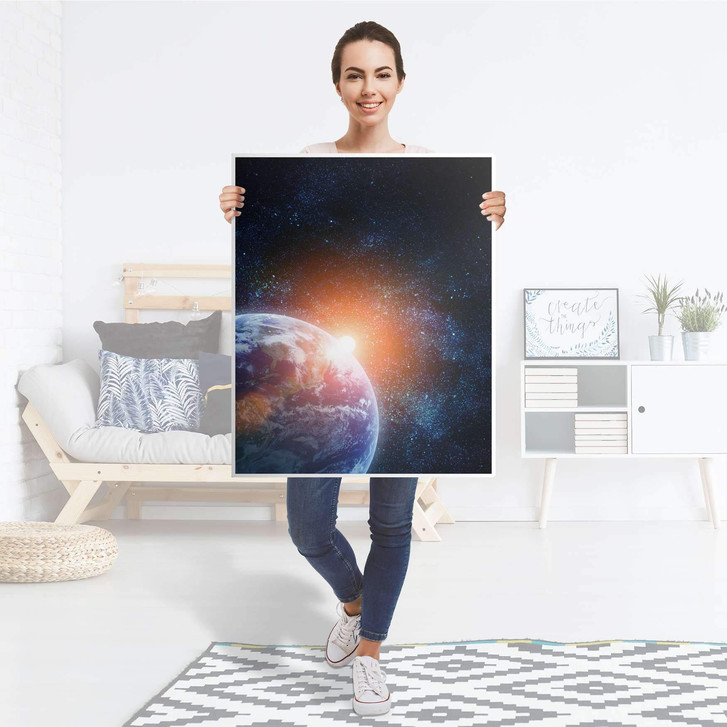 Unsere Möbelfolie Sunrise für das Billy Regal 3 Fächer ist der Blickfang in jedem Wohnzimmer. Die Dekofolien sind hochwertige, selbsthaftende Vinylfolien (seidenmatt) und können dank Bubble-free Technologie kinderleicht verklebt werden.