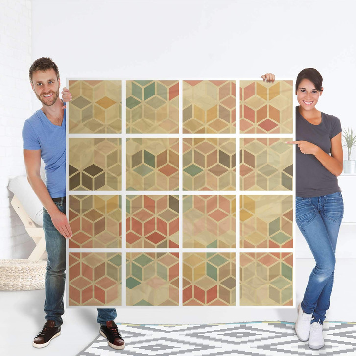 Unsere Selbstklebende Folie 3D Retro für das Expedit Regal 16 Türen ist der Blickfang in jedem Wohnzimmer. Die Dekofolien sind hochwertige, selbsthaftende Vinylfolien (seidenmatt) und können dank Bubble-free Technologie kinderleicht verklebt werden.