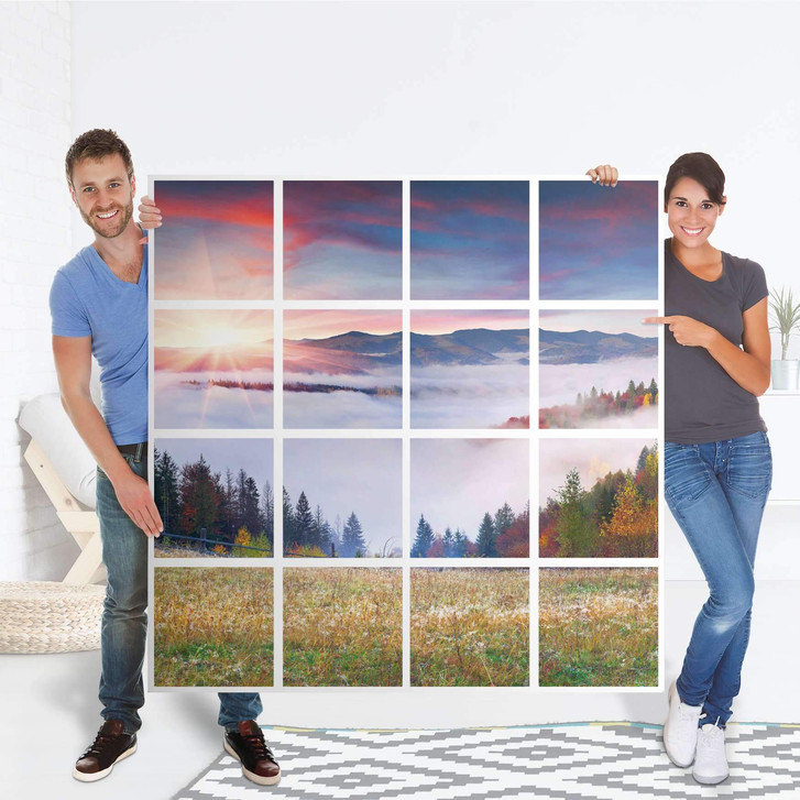 Unsere Selbstklebende Folie Herbstwald für das Expedit Regal 16 Türen ist der Blickfang in jedem Wohnzimmer. Die Dekofolien sind hochwertige, selbsthaftende Vinylfolien (seidenmatt) und können dank Bubble-free Technologie kinderleicht verklebt werden.