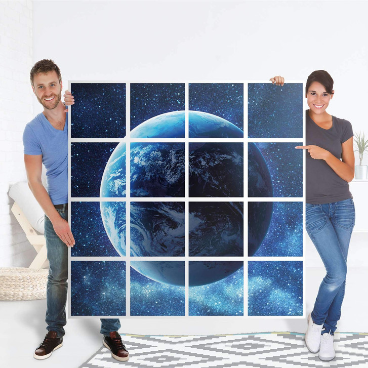 Unsere Selbstklebende Folie Planet Blue für das Expedit Regal 16 Türen ist der Blickfang in jedem Wohnzimmer. Die Dekofolien sind hochwertige, selbsthaftende Vinylfolien (seidenmatt) und können dank Bubble-free Technologie kinderleicht verklebt werden.
