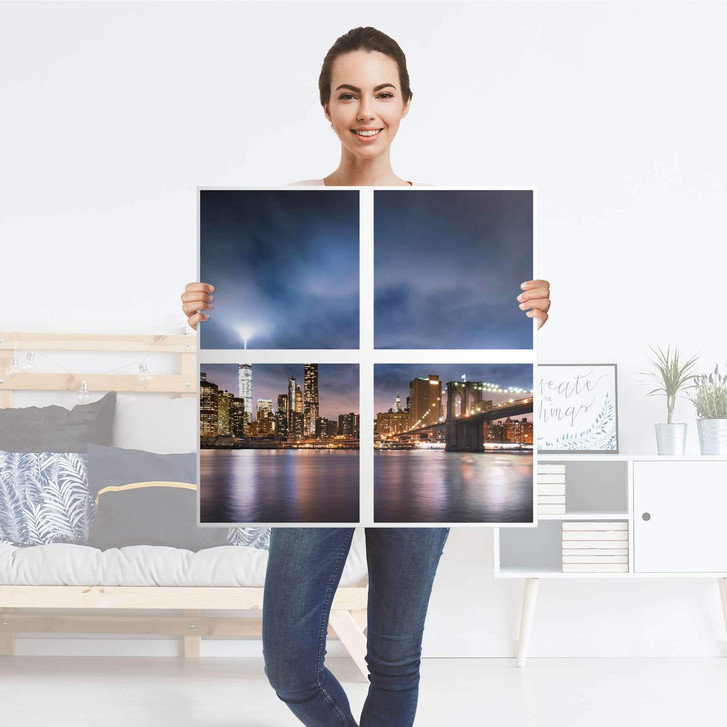 Unsere Möbelfolie Brooklyn Bridge für das Expedit Regal 4 Türen ist der Blickfang in jedem Wohnzimmer. Die Dekofolien sind hochwertige, selbsthaftende Vinylfolien (seidenmatt) und können dank Bubble-free Technologie kinderleicht verklebt werden.