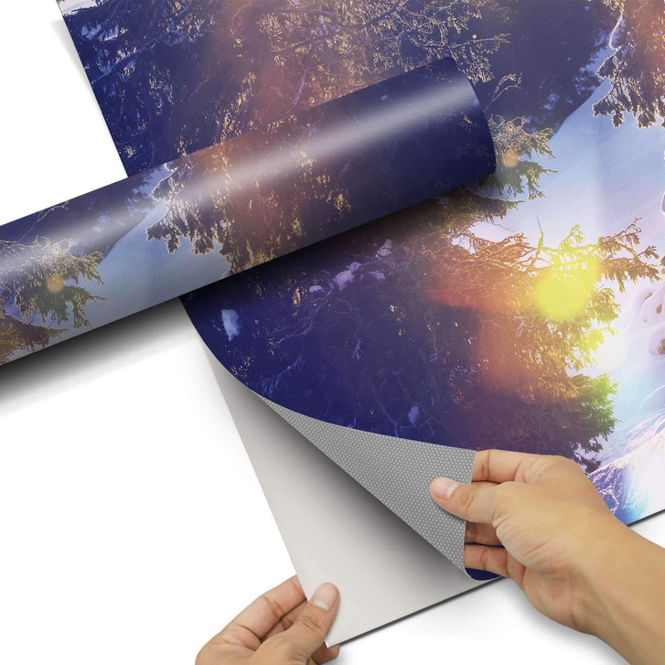 Das Trägerpapier von der Folie ca. 10-20 cm abziehen und am oberen Bereich des Objektes positionieren. Zieh jetzt das Trägerpapier Stück für Stück von der Motivfolie nach unten hin ab und streiche das Motiv vorsichtig an der Möbeloberfläche fest.