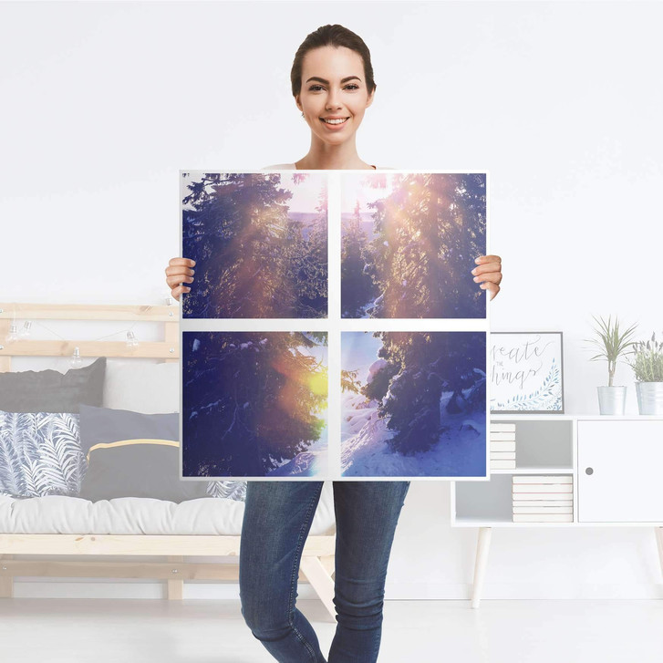 Unsere Möbelfolie Lichtflut für das Expedit Regal 4 Türen ist der Blickfang in jedem Wohnzimmer. Die Dekofolien sind hochwertige, selbsthaftende Vinylfolien (seidenmatt) und können dank Bubble-free Technologie kinderleicht verklebt werden.
