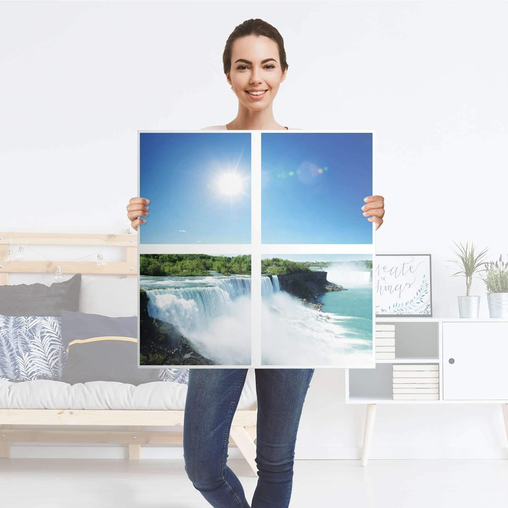 Unsere Möbelfolie Niagara Falls für das Expedit Regal 4 Türen ist der Blickfang in jedem Wohnzimmer. Die Dekofolien sind hochwertige, selbsthaftende Vinylfolien (seidenmatt) und können dank Bubble-free Technologie kinderleicht verklebt werden.