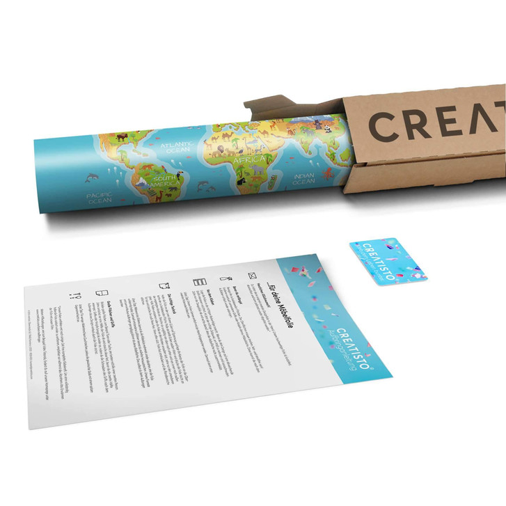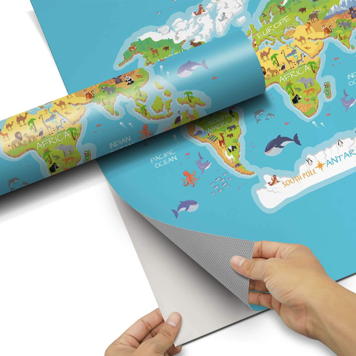 Unsere Möbelfolie Kids Weltkarte für das Expedit Regal oben ist der Blickfang in jedem Kinderzimmer. Die Dekofolien sind hochwertige, selbsthaftende Vinylfolien (seidenmatt) und können dank Bubble-free Technologie kinderleicht verklebt werden.