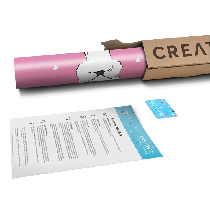 Das Trägerpapier von der Folie ca. 10-20 cm abziehen und am oberen Bereich des Objektes positionieren. Zieh jetzt das Trägerpapier Stück für Stück von der Motivfolie nach unten hin ab und streiche das Motiv vorsichtig an der Möbeloberfläche fest.