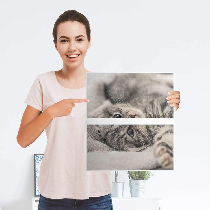 Unsere Selbstklebende Folie Kitty the Cat für die Hemnes Kommode 2 Schubladen ist der Blickfang in jedem Wohnzimmer. Die Dekofolien sind hochwertige, selbsthaftende Vinylfolien (seidenmatt) und können dank Bubble-free Technologie kinderleicht verklebt werden.
