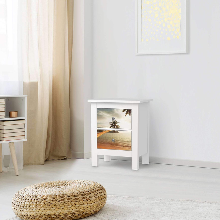 Unsere Selbstklebende Folie Paradise für die Hemnes Kommode 2 Schubladen ist der Blickfang in jedem Wohnzimmer. Die Dekofolien sind hochwertige, selbsthaftende Vinylfolien (seidenmatt) und können dank Bubble-free Technologie kinderleicht verklebt werden.
