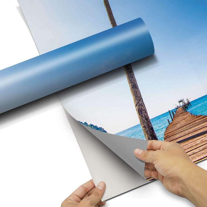Das Trägerpapier von der Folie ca. 10-20 cm abziehen und am oberen Bereich des Objektes positionieren. Zieh jetzt das Trägerpapier Stück für Stück von der Motivfolie nach unten hin ab und streiche das Motiv vorsichtig an der Möbeloberfläche fest.