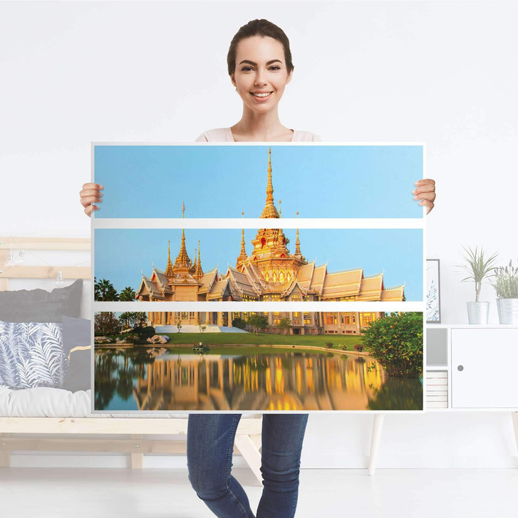 Unsere Möbelfolie Thailand Temple für die Hemnes Kommode 3 Schubladen ist der Blickfang in jedem Wohnzimmer. Die Dekofolien sind hochwertige, selbsthaftende Vinylfolien (seidenmatt) und können dank Bubble-free Technologie kinderleicht verklebt werden.