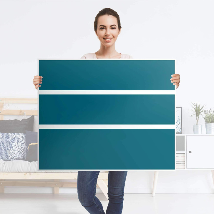Unsere Möbelfolie Türkisgrün Dark für die Hemnes Kommode 3 Schubladen ist der Blickfang in jedem Wohnzimmer. Die Dekofolien sind hochwertige, selbsthaftende Vinylfolien (seidenmatt) und können dank Bubble-free Technologie kinderleicht verklebt werden.