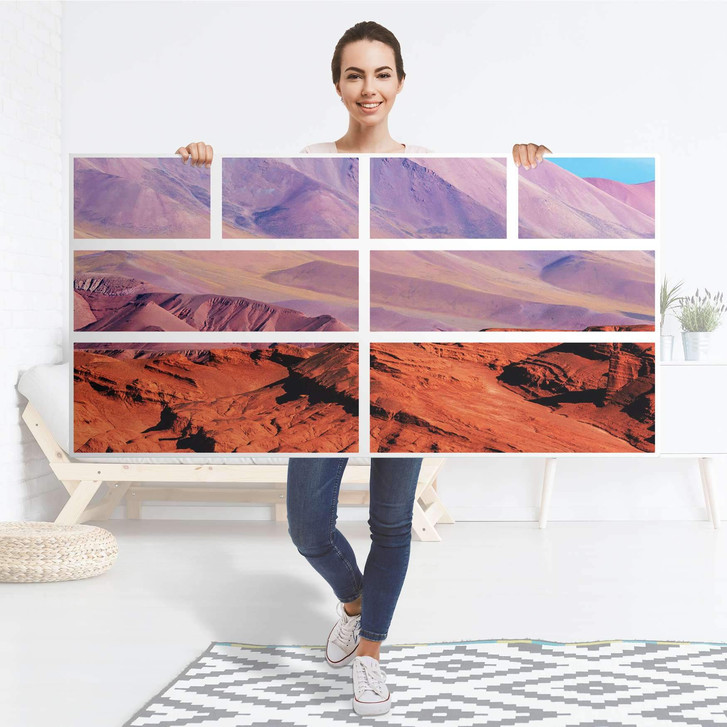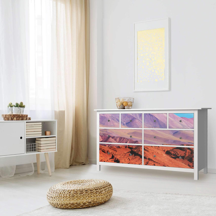 Unsere Möbelfolie Arizona für die Hemnes Kommode 8 Schubladen ist der Blickfang in jedem Wohnzimmer. Die Dekofolien sind hochwertige, selbsthaftende Vinylfolien (seidenmatt) und können dank Bubble-free Technologie kinderleicht verklebt werden.
