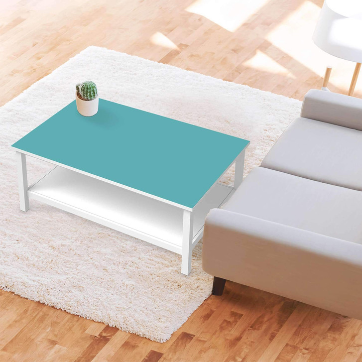 Unsere Möbelfolie Türkisgrün Light für den Hemnes Tisch 118x75cm ist der Blickfang in jedem Wohnzimmer. Die Dekofolien sind hochwertige, selbsthaftende Vinylfolien (seidenmatt) und können dank Bubble-free Technologie kinderleicht verklebt werden.