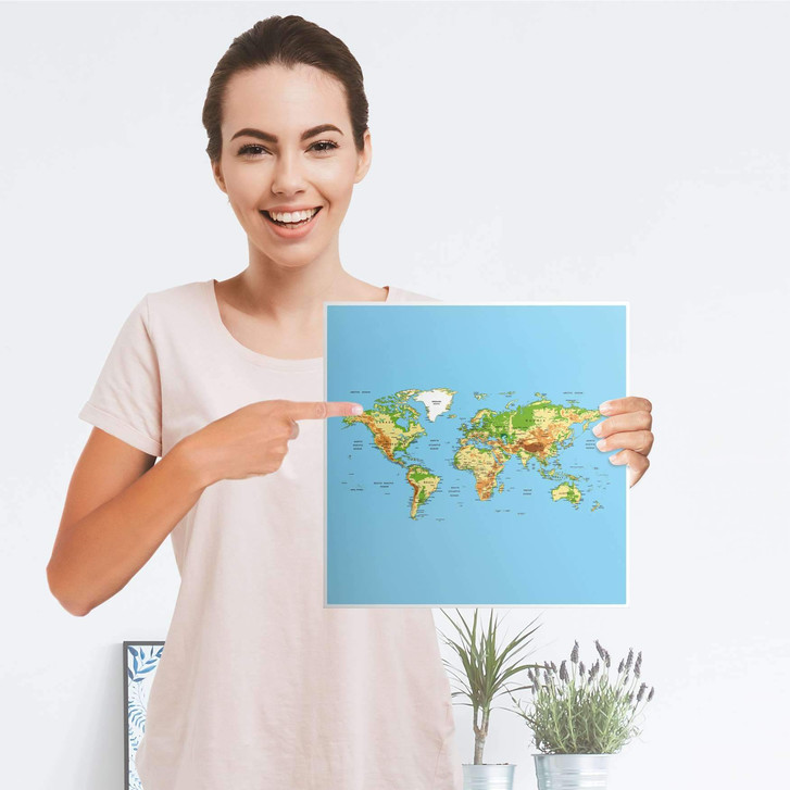 Unsere Selbstklebende Folie Geografische Weltkarte für das Kallax Regal 1 Türe ist der Blickfang in jedem Wohnzimmer. Die Dekofolien sind hochwertige, selbsthaftende Vinylfolien (seidenmatt) und können dank Bubble-free Technologie kinderleicht verklebt werden.